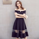 大码女装一字肩性感V领中长款连衣裙胖MM夏装200斤胖妹妹A字裙潮
