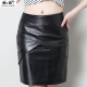 画里画外绵羊皮包臀裙半身裙短裙女A字裙包裙一步裙真皮小黑裙