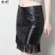画里画外秋冬欧美时尚流苏真皮皮裙女半身裙绵羊皮修身包臀裙中裙