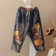 文艺风破洞刺绣牛仔裤女民族风宽松哈伦裤子小脚裤复古休闲七分裤