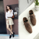 尖头浅口单鞋女春秋季女鞋平底休闲真皮粗跟小皮鞋小白鞋低跟鞋子