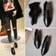 粗跟单鞋女方头英伦春季真皮布洛克女鞋学院风复古中跟系带小皮鞋