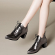 奈雪儿春秋季新款粗跟单鞋女尖头真皮高跟鞋系带休闲百搭深口女鞋