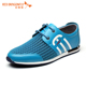 红蜻蜓休闲男鞋 2016春季新款真皮时尚拼接网布系带男单鞋子 6273