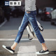 酷狼王2016夏季薄款牛仔裤男青年弹力修身水洗九分裤9分韩版潮