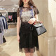 美貌如花~名媛风 法国17春夏新款透视拼色睫毛蕾丝刺绣短袖连衣裙