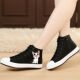 春季韩版卡通帆布鞋女学生鞋 高帮系带布鞋女休闲鞋 涂鸦小白鞋