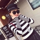 黑白条纹针织衫女套头高领长袖修身显瘦秋冬韩版学生短款打底衫潮
