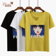 夏装新款港味港风时尚卡通印花宽松学生百搭短袖破洞镂空t恤女潮
