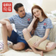 绮瑞夏季纯棉情侣睡衣薄款条纹套装青年男睡衣女夏短袖休闲家居服
