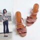 夏季新款真皮韩版甜美时尚百搭性感细跟露趾包跟套脚蝴蝶结凉鞋