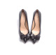 FED 1100255 气质小尖头蝴蝶结珍珠纹牛皮浅口单鞋黑白两色