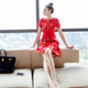 复古2017春装新款性感蕾丝修身裙子碎花刺绣大红色连衣裙春秋女装