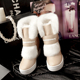 女靴子粉色内增高加绒加厚毛毛冬靴厚底短靴杏色秋冬季鞋坡跟棉靴
