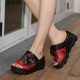 民族风绣花鞋女鞋单鞋坡跟真皮圆头浅口套脚中老年妈妈鞋中跟刺绣