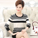 新款妈妈装春装长袖针织衫中年女士40-50岁宽松T恤条纹打底上衣薄