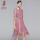 经典故事女装春新款时尚潮流系带修身不规则印花雪纺连衣裙