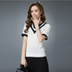 2017春季新款女装韩版撞色T恤女宽松百搭七分袖短款上衣打底衫女