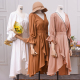 裸色无袖连衣裙柔美简约腰带修身棉麻中长款女生裙子2017夏季新款