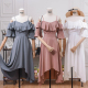 假两件裙一字领碎花连衣裙女夏季新款露肩甜美绑带收腰显瘦中长款