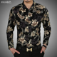 春夏季男士长袖衬衫纯丝光棉免烫寸衫中年男土休闲大码花衬衣薄款