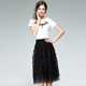 2017夏季新款纯色翻领衬衫连衣裙两件套网纱刺绣中长款半身裙套装