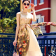 欧洲站2017夏装新款欧美大牌重工刺绣印花两件套中长款a型连衣裙