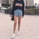 夏季韩国百搭复古牛仔短裤女卷边显瘦AA高腰牛仔阔腿短裤热裤女潮