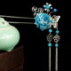 蓝色花发簪古典流苏步摇发簪 双面古装发簪子复古钗子古典头饰