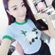 2017春夏新款韩国明星款粉色蒙眼娃娃宽松显瘦短袖百搭T恤男女款