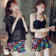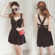 亦美珊泳衣女 小胸聚拢保守 分体裙式平角韩国学生黑色温泉游泳衣