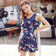 亦美珊温泉泳衣女连体裙式平角游泳衣复古印花显瘦遮肚保守游泳装
