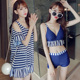 金宏新款泳衣女三件套分体高腰条纹性感小胸聚拢学生少女韩国泳装