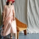 [any灰之拈花者]清新皱棉藕粉色连衣裙U领中袖抽绳收腰连衣裙