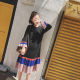 2017春装新款韩版学生宽松拼接荷叶边圆领中长款裙子长袖连衣裙女