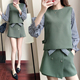 大码女装春装2017胖MM200斤宽松短裤两件套胖妹妹显瘦时尚套装潮