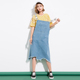 蔷薇学生牛仔背带裙子做旧不规则毛边女装中长款大码连衣裙夏装新