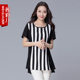 胖妹妹夏装短袖t恤女宽松大码胖mm条纹拼接宽松遮肚显瘦打底衫潮