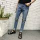 破洞牛仔裤男夏季潮流小脚裤男装韩版修身哈伦裤青年英伦九分裤子