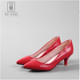 172巷大码女鞋41-43春季新款真皮高跟鞋尖头细跟浅口单鞋红色婚鞋