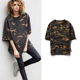 短袖体恤女韩版宽松迷彩上衣T恤衫学院风夏季新款潮牌女装蝙蝠袖