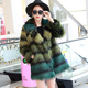 欧洲站2016冬新款海宁皮草外套中长款女西装领渐变色仿狐狸毛大衣