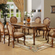 6人布艺餐桌椅子家用现货美式餐桌椅组合长方形雕花木餐台一桌6椅