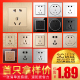 德日开关插座面板二三插家用墙壁电源86型五孔插座套餐香槟金拉丝
