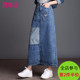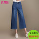 良帛佳高腰八分牛仔裤阔腿裤春夏大码弹力宽松百搭九分裤直筒薄款
