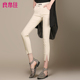 良帛佳2017春装九分小脚裤女休闲裤高弹力大码显瘦打底铅笔裤彩裤