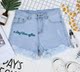 短裤女春夏韩版超时尚学生字母刺绣毛边牛仔短裤显瘦直筒裤牛仔裤