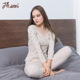 顶瓜瓜秋衣秋裤女棉质面料V领蕾丝修身薄款保暖内衣女套装顶呱呱