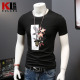 库朗夏装男士短袖T恤2017新款圆领百搭男装体恤衫烫钻烧花半截袖
