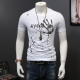 库朗夏季男装精神小伙短袖T恤男白色圆领修身人物印花衣服潮社会